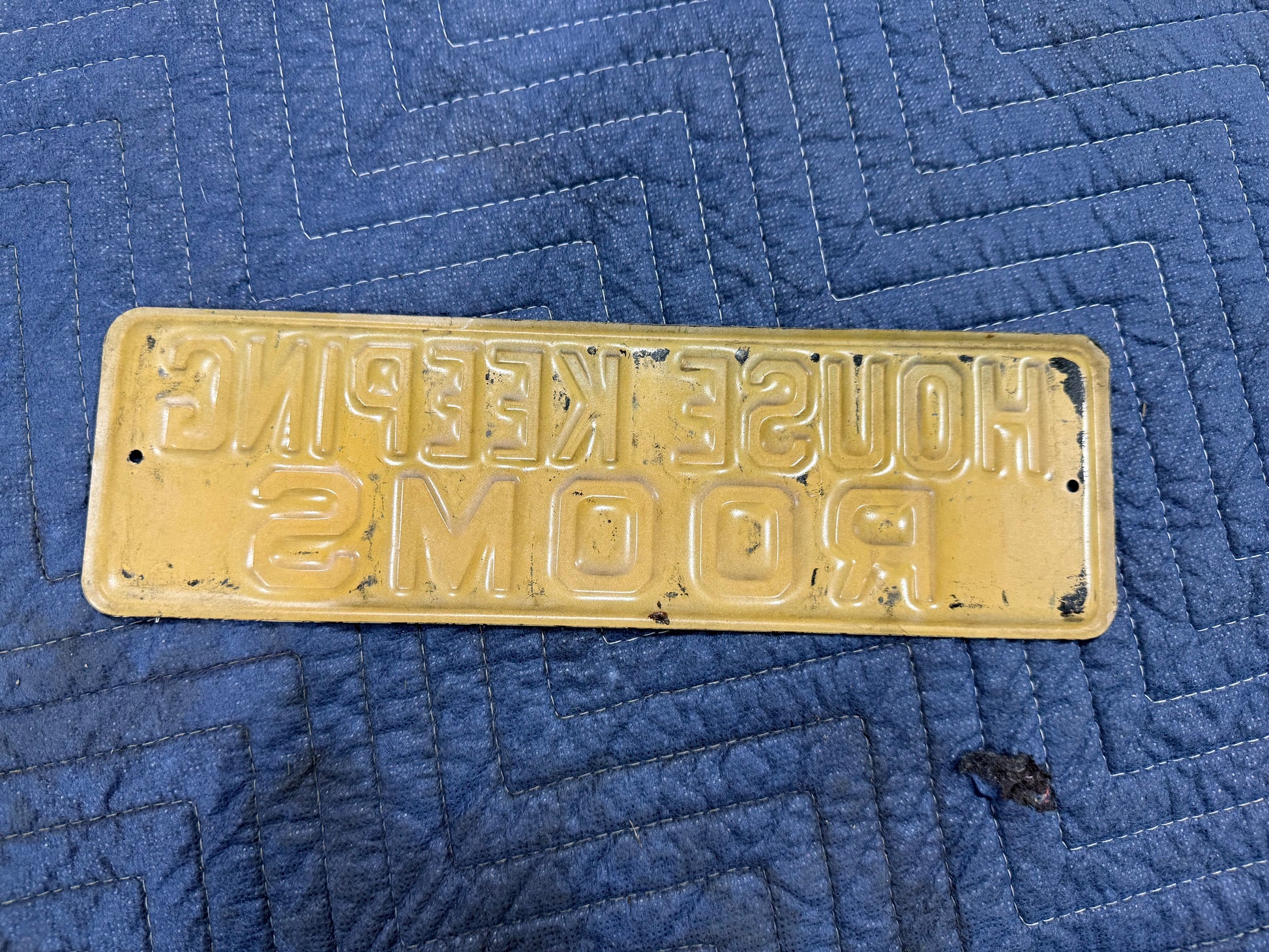 Small Single Sided Tin Sign reads "House Keeping Rooms" and measures approximately 12"x3.5"