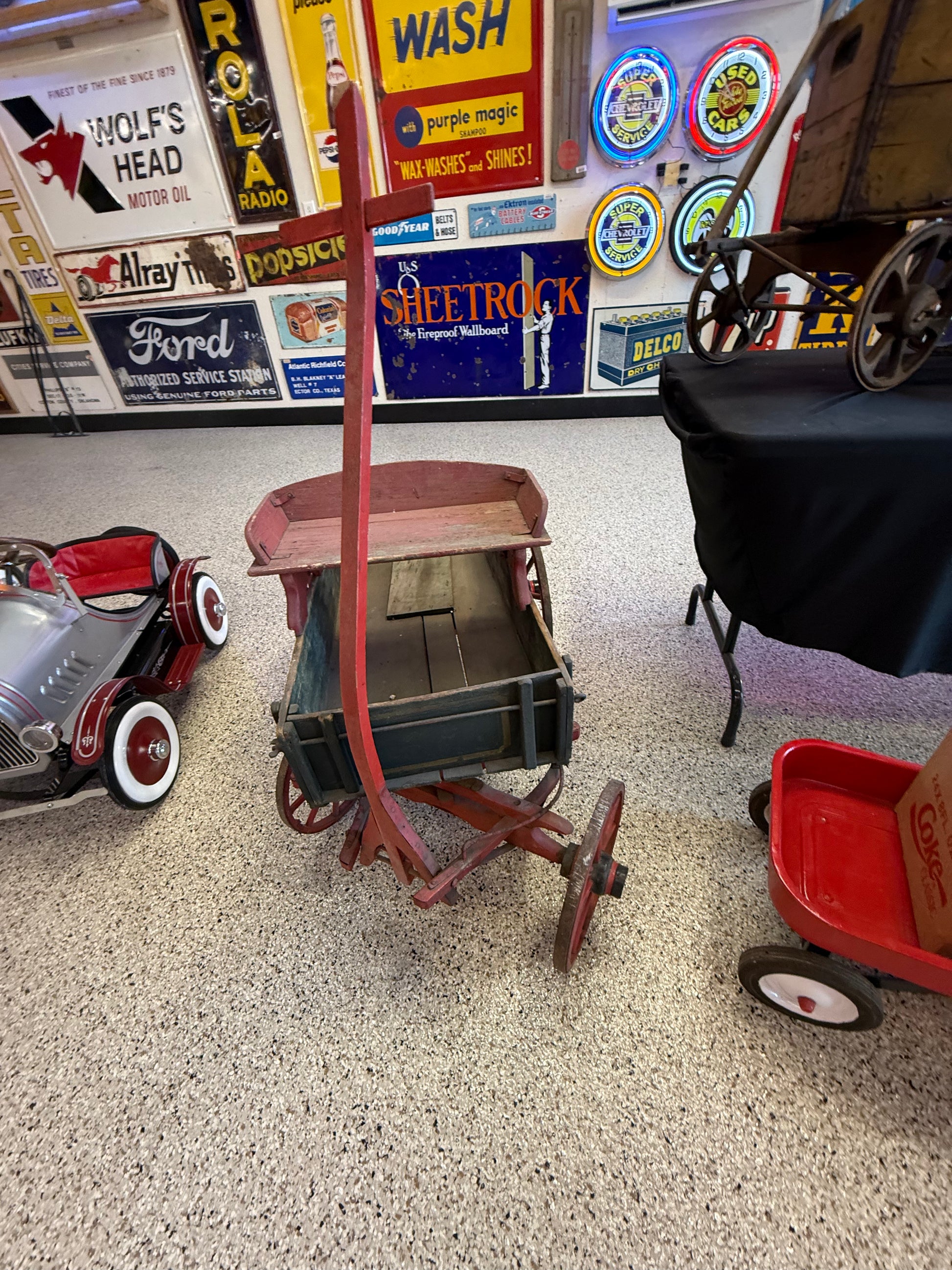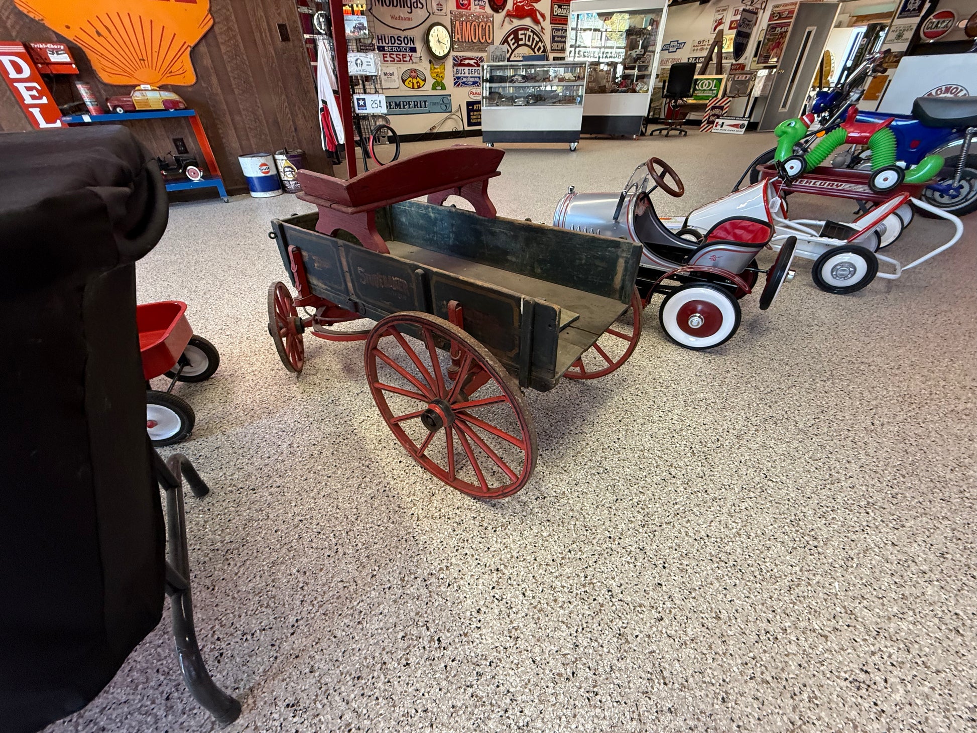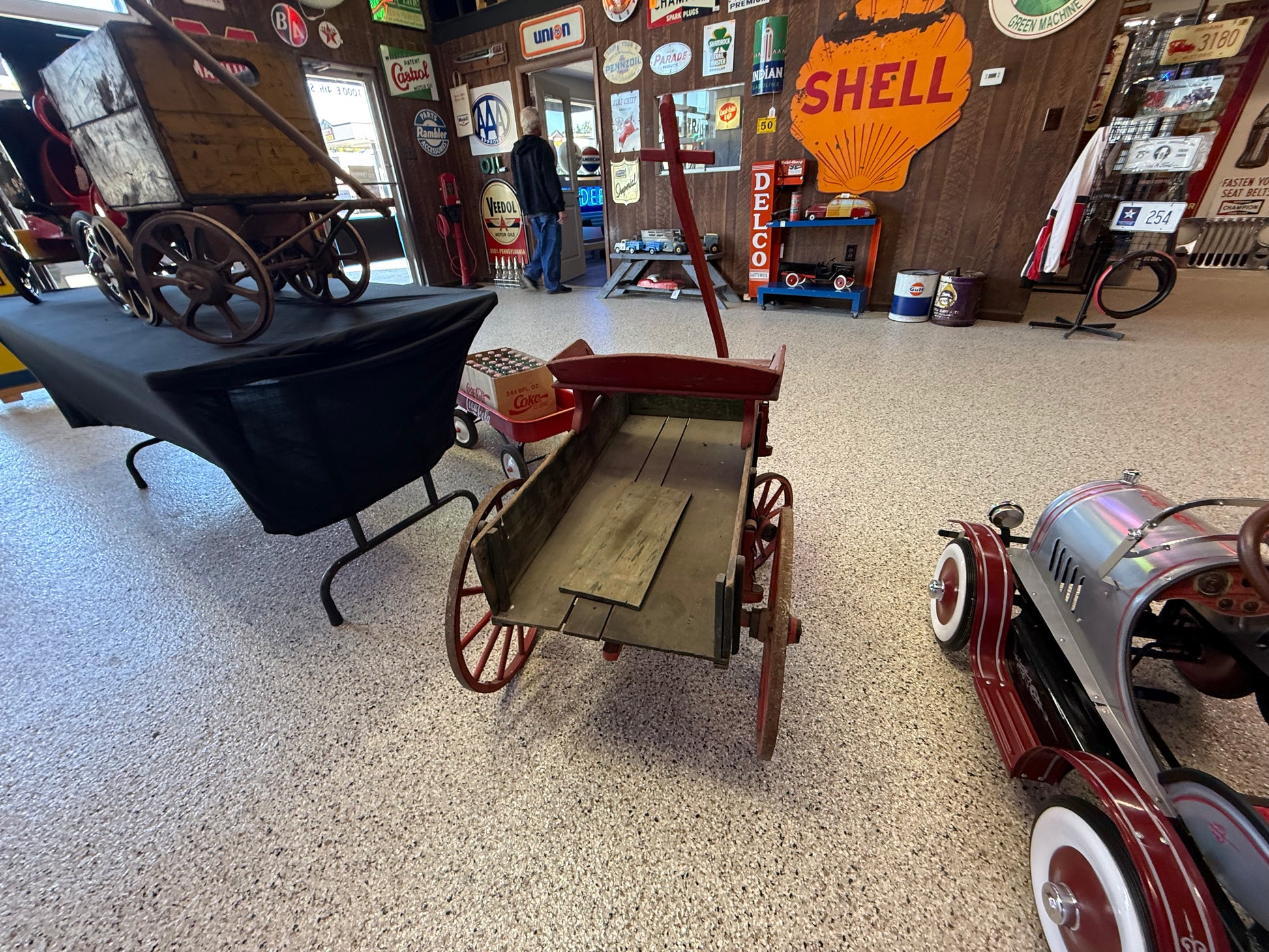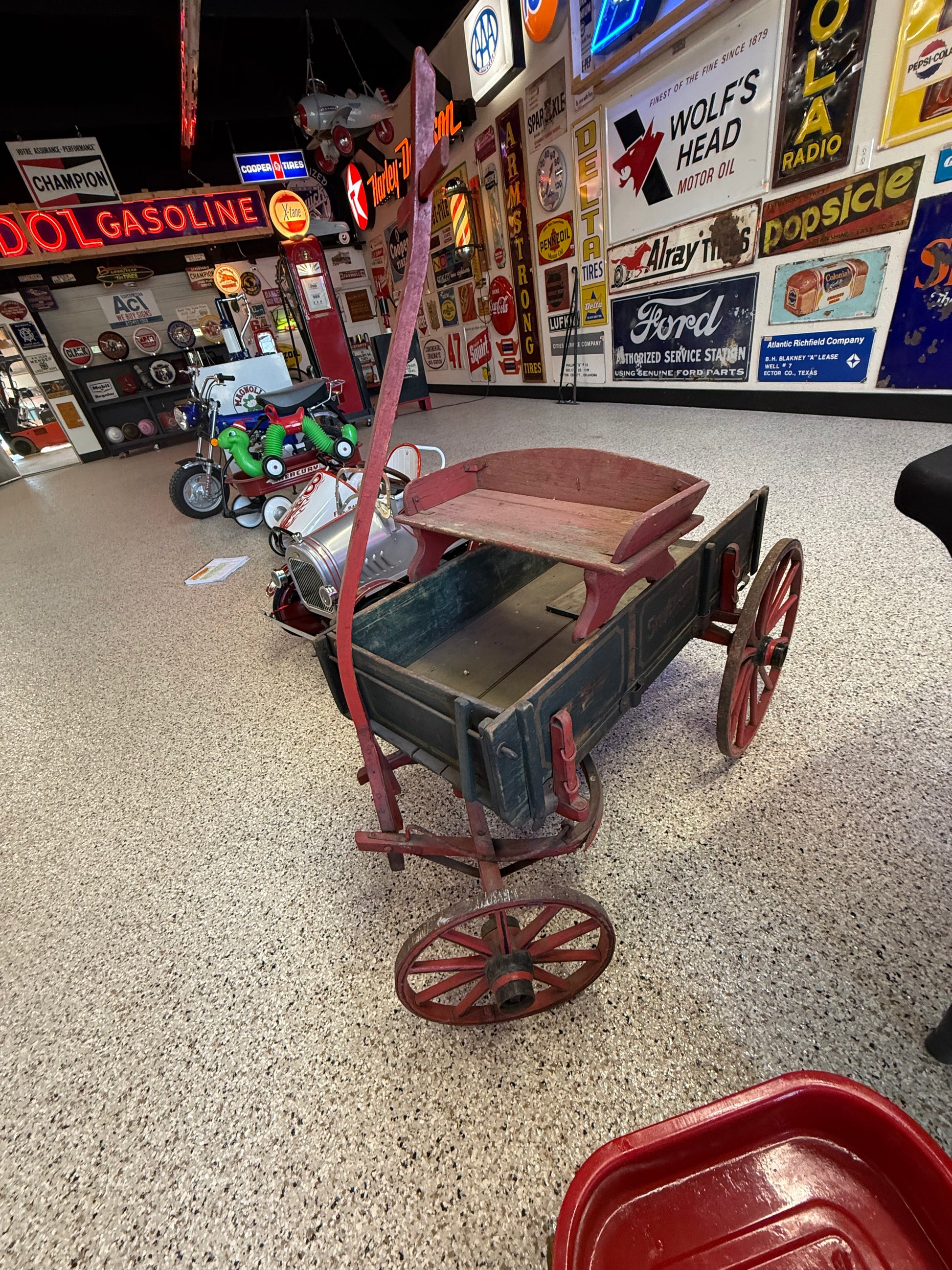 Wooden Wagon measures approximately 36" long and 26" tall from floor to seat